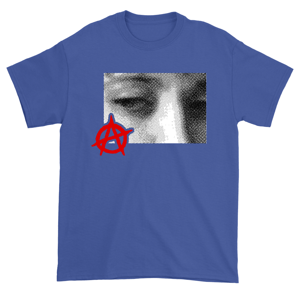 The Ekkstacy Anarchy design, printed on a comfortable, standard-fitting china blue Comfort Colors t-shirt.
